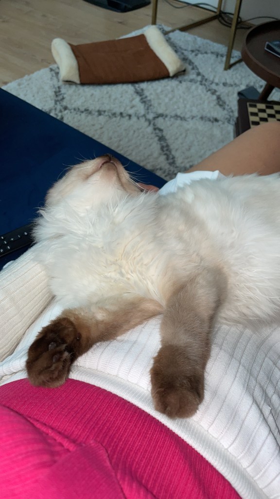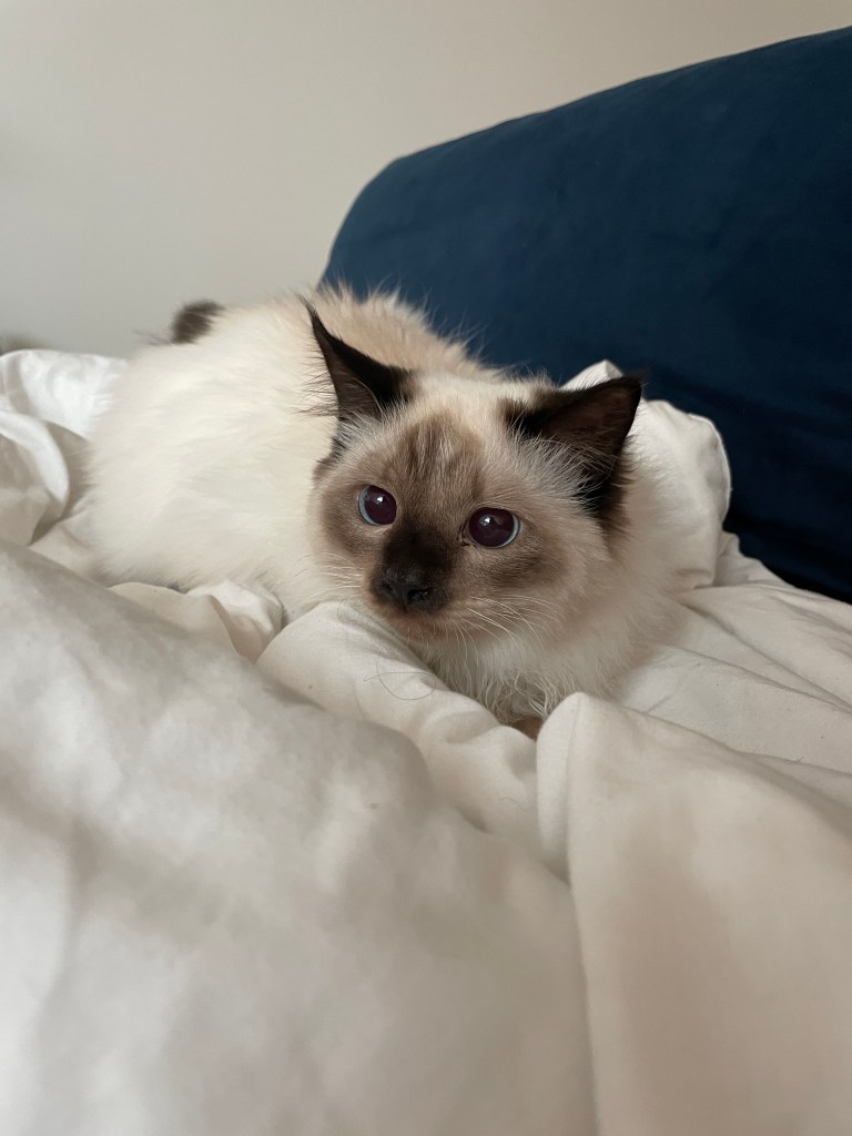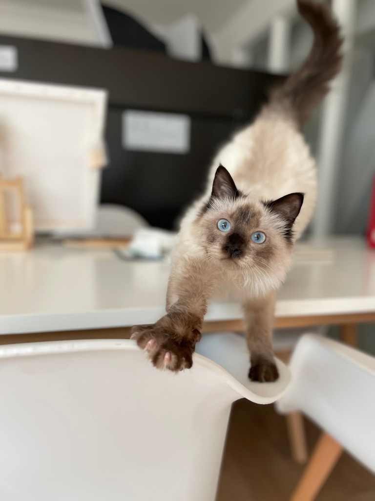 My partner and I decided we would love to bring home a kitten over an older cat. We love to see the kitten grow up with us without all the emotional bagage older cats might have. Kittens still adjust their routines to the owners lifestyle, while older cats can be very set in their ways. Personally for me, the bonding with the kitten is also extremely important since I wanted a real affectionate companion. And truth is, kittens tend to bond better to a new family than older cats. So my partner and I brought the cutest Ragdoll kitten home. We got him when we was 14 weeks old and already sprayed. His personality began shining through quickly. We called him Sapphire, because Sapphire is my birthstone and matches the color of the kitten’s eyes. Sapphire is a very affectionate, cuddly kitten. He loves to play fetch, morning cuddles, snacks and being carried. His personality matches the breed’s description top notch. Sapphire is so adorable, I love him so much! Even my partner loves him deeply and snuggles and kisses Sapphire with every possibility. Sapphire is now almost 8 months old and has never shown a sign of aggression that I have definitely seen with other cats. Sapphire has never hissed, clawed, scratched or bitten violently. Sapphire does give soft play bites, which I read could be kitten love bites. He pulls his nails in toys while playing and loves to bunny kick and I am over the moon that Sapphire has not shown one ounce of aggression. Sapphire has been introduced to strangers, young children and small dogs, who were all fine for Sapphire. I have never seen such a docile cat. Ragdolls do need a lot of attention, just as much as dogs, and preferably you should get two kittens so they can play together. Ragdolls crave human interaction and should never be left alone for long hours, because you can really notice they get lonely quickly. So I highly recommend the Ragdoll breed for almost any responsible family situation.