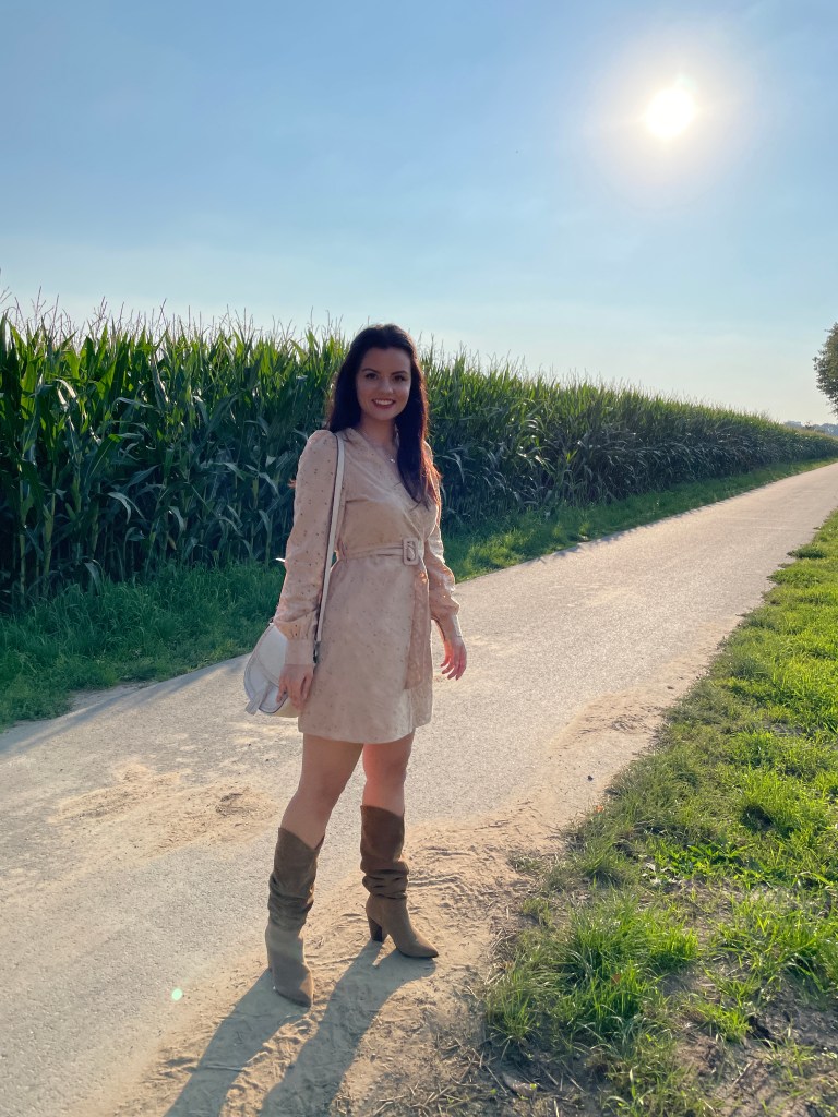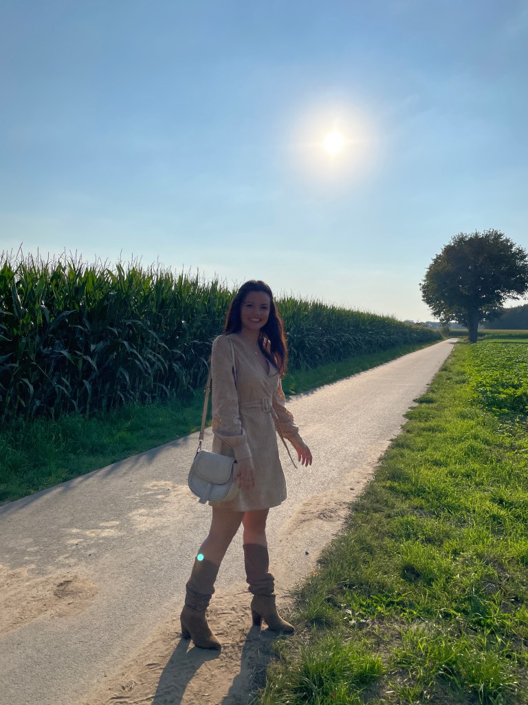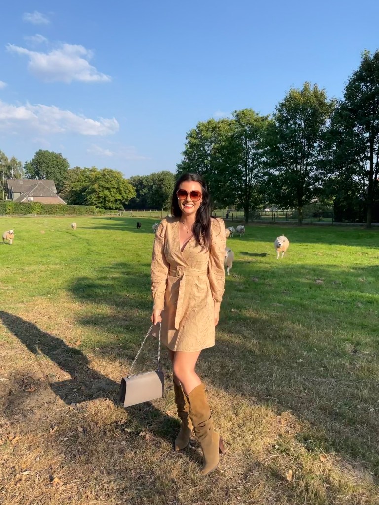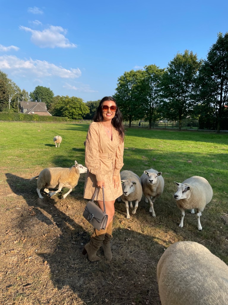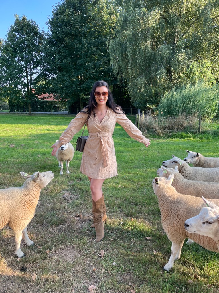 The country side can be just as fashionable as the metropolitans! Country side fashion consists of natural materials and high quality items for the purpose of being durable and comfortable while still looking chic. I personally love the fashion looks and outfit inspiration of country side bloggers and influencers. As a country fashionista myself I love to wear leather boots, a-line dresses and natural colors. Being in the country side, on the farm, makes me connect with nature. It truly helps me relax and fill my heart with more love. As you can see in the photos in this post I feel like Little Bo Peep and her flock of sheep! Aren’t animals the most precious? I love their aura.