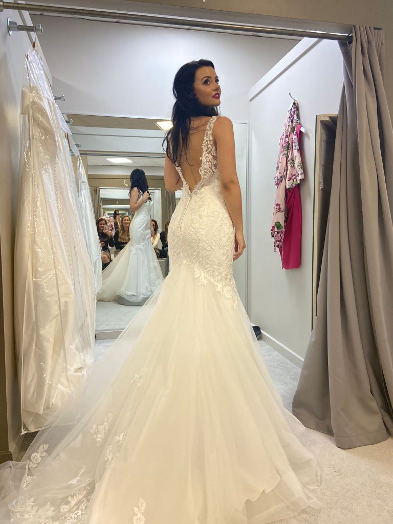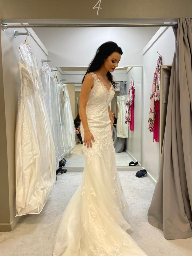 So I tried on 4 dresses that were ok but not what I liked. The fourth dress was so horrible no one was allowed to take photos haha! I kept asking for some dresses of which I clearly remembered the name. Eventually I tried on a classic mermaid called Winslet. And before I really had the dress on, I already knew this is the one…