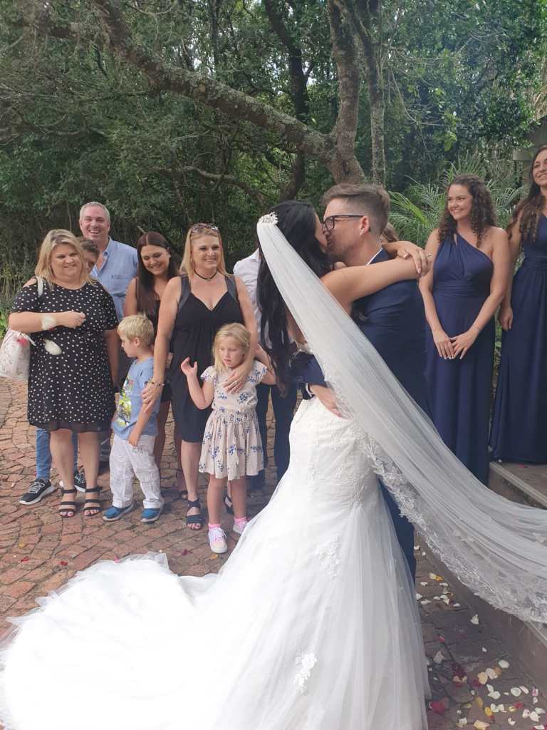 My heart fell on this beautiful, quite famous, wedding venue, called the Plantation in Port Elizabeth. The Plantation consists of a beautiful French style vintage building in the middle of a huge private plot of land. The reception building is styled with high windows, ceilings, a fire pit, multiple French doors and Tiffany woodwork. Outside is a beautiful terrace and garden, secluded by the forest. We had monkeys running on the roof of the venue during our wedding! And multiple mongoose coming inside and saying hello to the female guests. And while I was getting ready I heard the birds sing, all the way throughout when I walked down the aisle. A true Disney Princess experience!