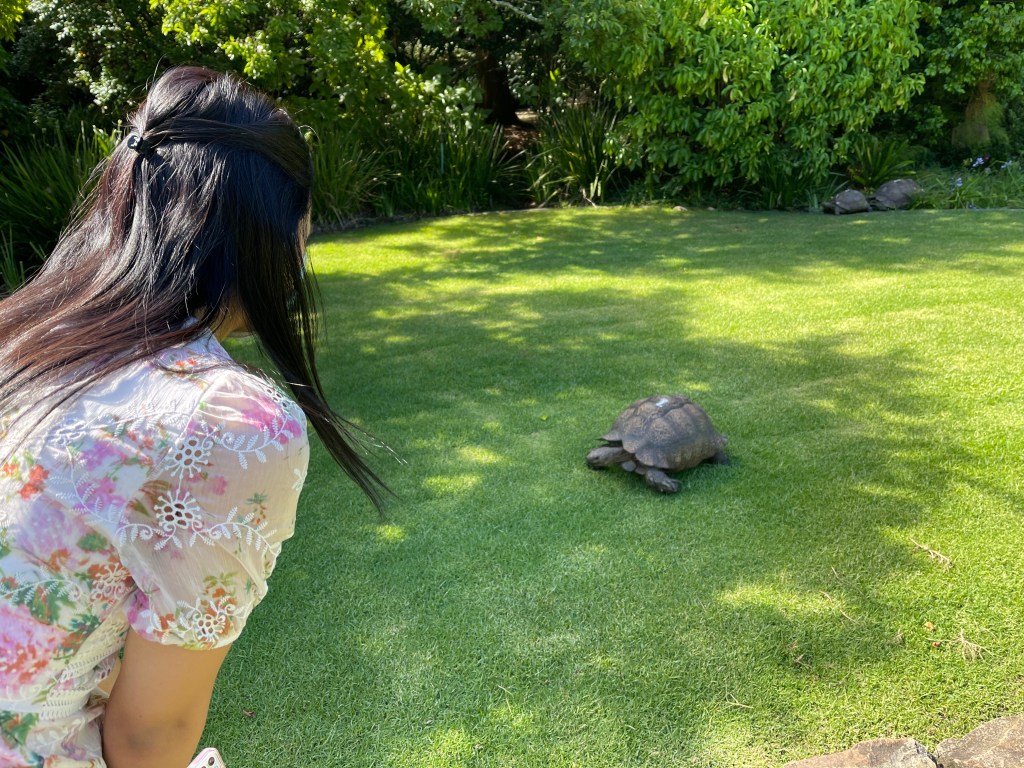 Do you love nature too? The Vineyard Hotel has beautiful private gardens, where birds and turtles roam around freely. From our room we had the most gorgeous view on Table Mountain, one of the 7 nature wonders of the world. Waking up to a view like this is divine. This is a pure luxury view in my opinion. Of course, the Vineyard Hotel also has a small vineyard which makes for luscious walks along the premise. I mostly enjoyed seeing the cute turtles living their best life. I show you the photos underneath this post, so beautiful! Truly 5/5 for me.