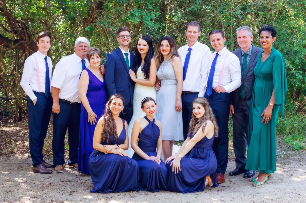 Today, I am sharing the first part of our wedding family photos. These photos were taken after the ceremony, in front of the quaint chapel. We had some delicious bites that were chosen by me and the groom. Such as chicken rotis, sosaties, cheesecake and more all in South African style. I am sharing my real wedding family photos with you, in order to share inspiration for poses and set-ups. So you know what to expect when this part of your wedding comes. After the emotional ceremony, a memory engrained in my brain in the best way possible, I let go of all the excitement, tension and emotion. It was truly the most beautiful day of my life. I have never felt closer to God or to my Husband as that day and I would love to do it over and over. But, to get back to what I wanted to tell you: I knew I wasn’t necessarily looking my best when these photos were taken. I had tears running down my cheeks, because the ceremony was so beautiful and pure. I felt a lot of relief and pure peace after the ceremony, while my heart was still highly emotional. So these photos, you can see that I am very peaceful. The photos are less bubbly and posed as later when I got more into the photos. And I think that is perfectly normal and real!